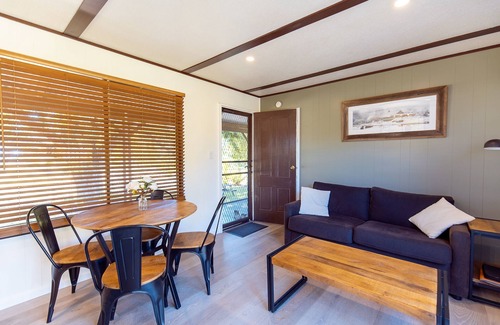 Some of the cabins features include a reverse cycle air conditioner, full size fridge, 32 LED TV, DVD player, washing machine and dryer, fully equipped kitchen and cooking facilities,( Includes all pots, pans, cutlery, crockery, utensils ) bed linen, towels, BBQ and outdoor fireplace.