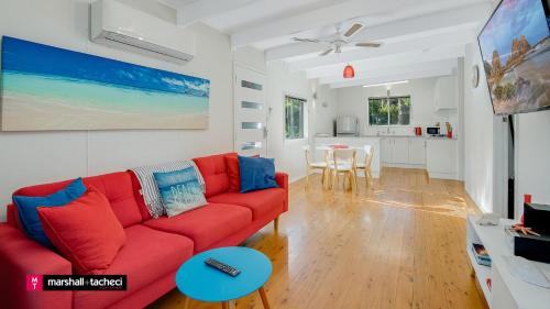 Offering a garden, Eight On The Lake 8 Fairhaven Point Way Lakefront provides accommodations in Bermagui. This beachfront property offers access to a patio. Haywards Beach is a 18-minute walk away and Bermagui Marina is 5.1 miles from the vacation home. Featuring lake and river views, this vacation home features 2 bedrooms and opens to a balcony. The air-conditioned vacation home also offers a flat-screen TV, a fully equipped kitchen with an oven, a seating area, washing machine, and 1 bathroom with a shower. A private beach area is available on-site and fishing can be enjoyed close to the vacation home. Narooma Marina is 17 miles from Eight On The Lake 8 Fairhaven Point Way Lakefront. Moruya Airport is 47 miles away.