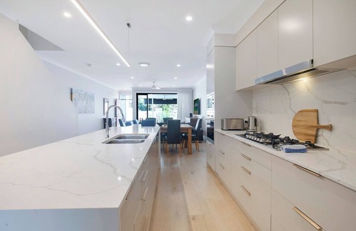 Each of the three bedrooms has been beautifully appointed for a good night’s sleep. The combination of air-conditioning, heating and ceiling fans keeps things comfortable no matter what time of year you’re travelling. The primary suite includes a king-sized bed, balcony and gorgeous ensuite bathroom with a double vanity, while the second and third bedrooms each offer double beds. Refresh in the main bathroom – enjoying a combination bathtub and shower – while a dedicated laundry room with a washing machine and dryer adds to your everyday convenience.
