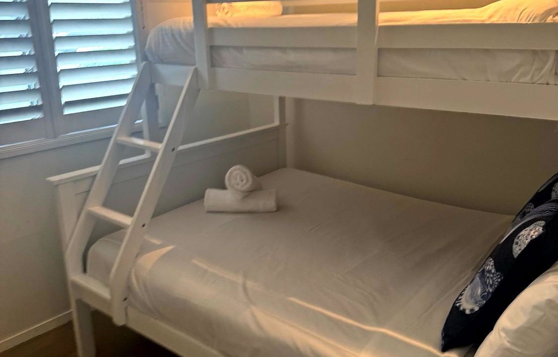 Bedroom 3 – tri-bunk bed, double + single bed
