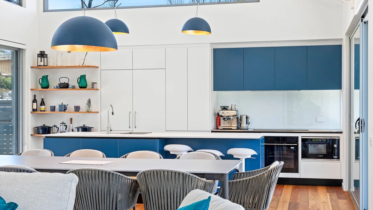 Cook up a feast in the fully equipped kitchen 🍳, dine with ocean views 🌅, and unwind by the indoor fireplace or outdoor fire pit 🔥. Stay active with Les Mills gear 💪, play the piano 🎹, or rinse off after the beach in one of two outdoor hot showers 🚿.