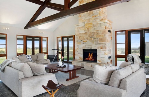 Extra accommodation is available at "The Shed House" approx. 30 meters away from the main house. This sleeps an additional 8 people (accommodating a total of 18 guests across the main house and shed house). Bedrooms 1 and 2 have Queen beds, Bedrooms 3 and 4 have 2 single beds in each. 1 Bathroom with separate toilet, full kitchen and combined Lounge and dining area. Laundry facilities. Ducted heating, floor heating in bathroom, and combustion Fireplace keep the "Shed House" cozy and warm through winter. Please email re prices for the extra accommodation.